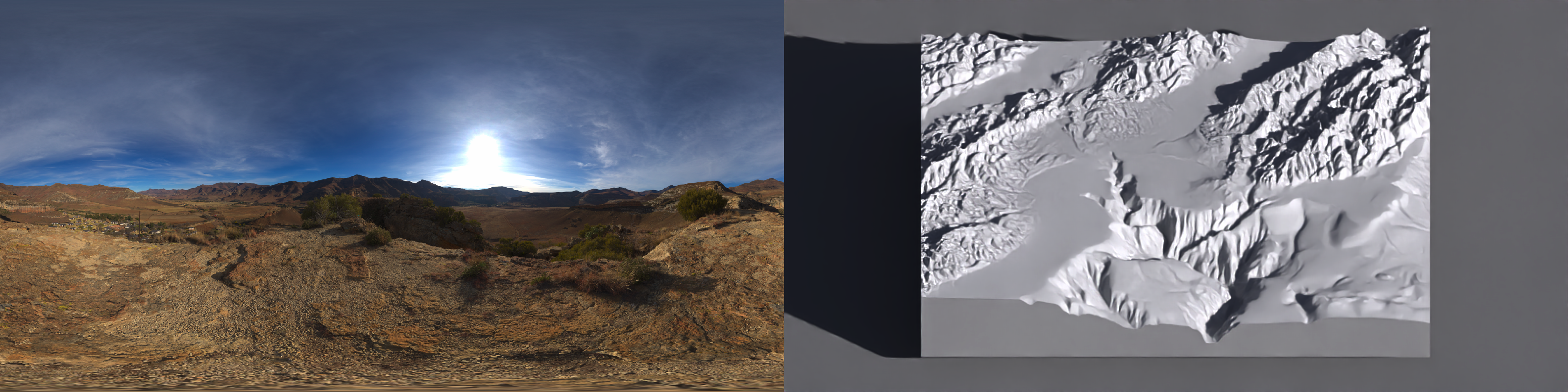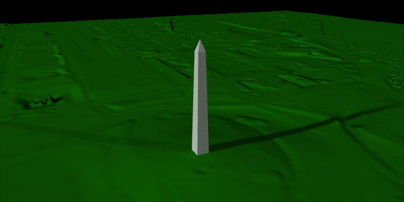 This is okay for simple landscapes, but it becomes problematic as you introduce features which create long shadows. It’s also a pain to arrange the perfect 3D orientation of lights to capture your scene: you have to position three objects in space (camera, fill light, key light) plus determine the right relative intensity of light. It’s a scene-dependent 10D optimization problem. For an example, let’s look at the Washington Monument lit by both a bright key light and a dimmer fill light.