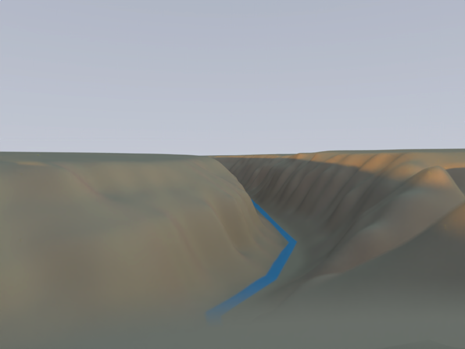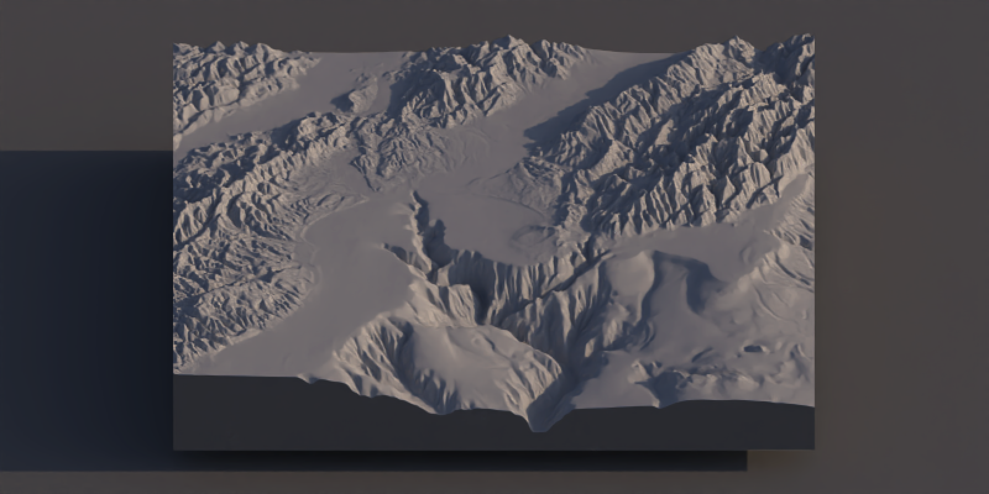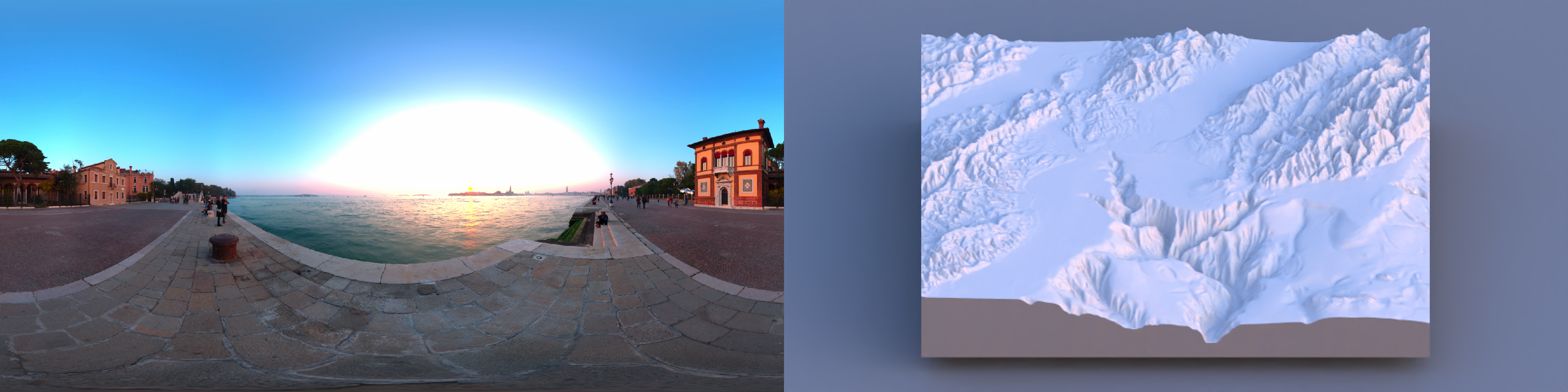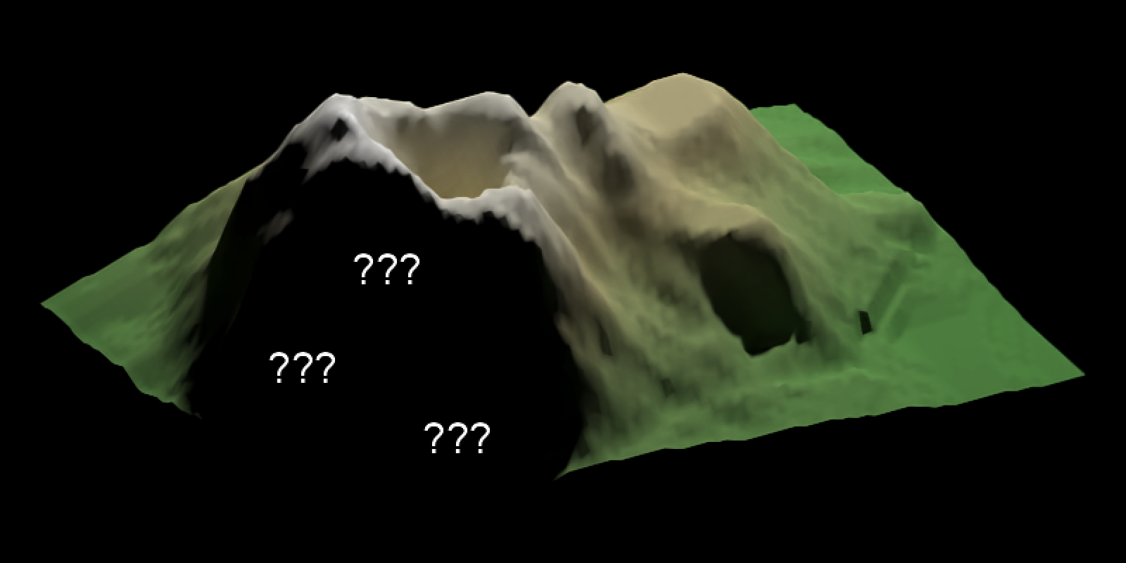 One of the hardest details to get right in 3D data visualization is lighting: since 2D screens don’t offer the benefit of stereoscopic vision, we have to rely on subtle cues like occlusion, relative motion (if animated), and shading to be able to interpret the space as 3D. Nowhere is this more clearly demonstrated than on topographic maps, where shadows can make what is otherwise a largely featureless blob of color transform into a landscape. Add direct light with diffuse shading to a model, and voilà: