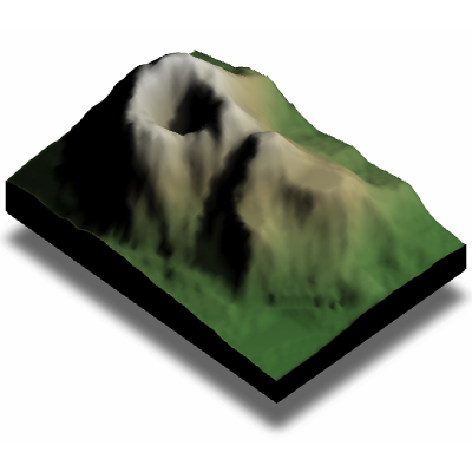 A volcano! Adding basic shading like this allows us to interpret the surface as 3D, even though the medium (your screen) is 2D. This is all perfectly fine and dandy until there’s some detail you want to see in that shaded space. In that case, just using a key light can hide important (key!) information.