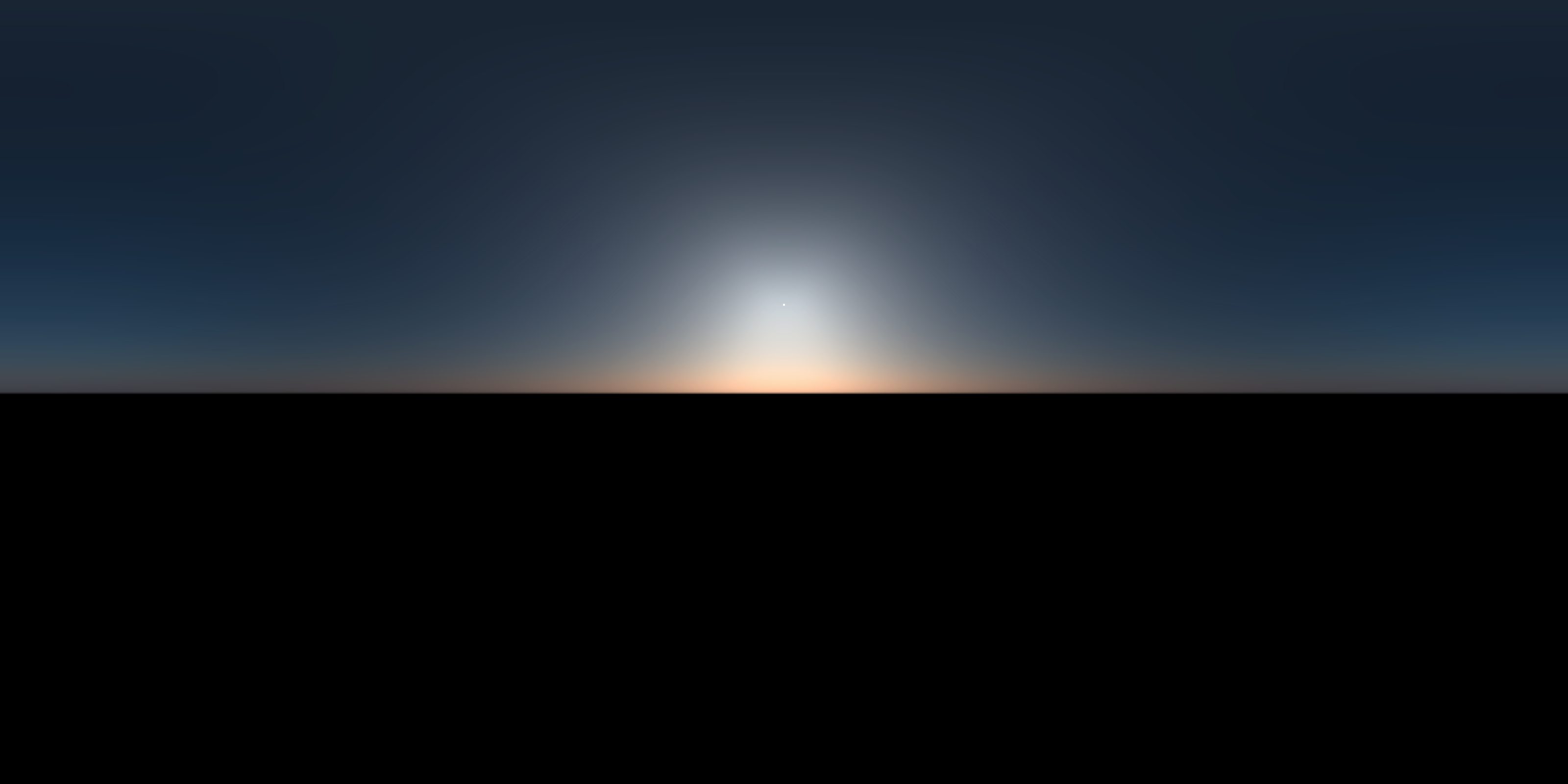 This is not ideal. Doubly so because passing a uniformly black EXR as a background image can cause computational issues in a pathtracer if you aren’t careful, since trying to normalize the sampling distribution (for importance sampling purposes) fails due to division by zero. Is there a way we can also have an accurate model of the night sky as well?