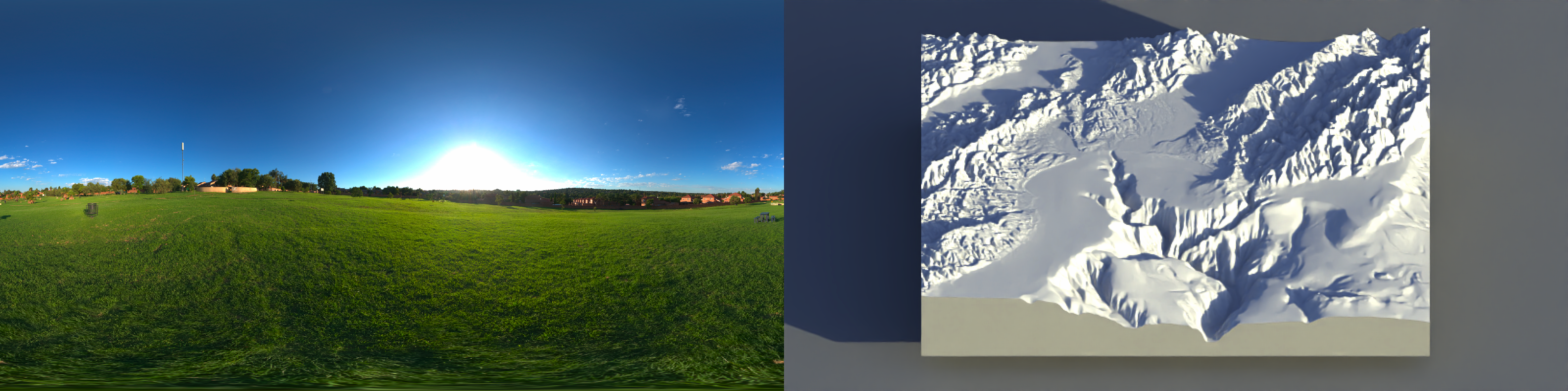 Soft shadows, nice highlights, good color: 8/10! Why not 10/10 on my entirely subjective self-assessment? Well, there are definitely some changes I would make if I were really focused on “perfecting” the lighting here: I’d punch up the key light and increase the solar angle so the shadows weren’t so long. But these are nitpicks, and the raw solar atmospheric simulation of sunset provides a solution that’s good enough for most purposes–and that’s the point! We can get the 80% “good enough” solution and focus our energy on the actual 3D data.
