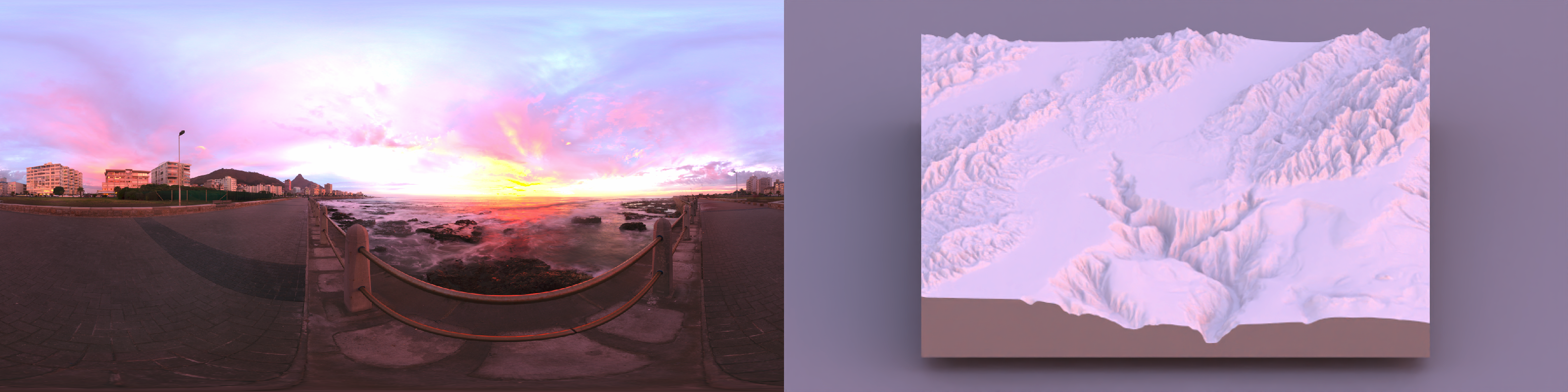 The issue is the sharpness and discreteness of the lights: it’s not aesthetically pleasing to have multiple sharply defined lights, and the marginal additional context the fill light provides is strongly counteracted by the visual mess it creates. Photographers face the same issue when capturing people in sunlight: direct sunlight creates unflattering and distracting sharp shadows across the face. What we need is some sort of gradual variation in light across the sky that provides a soft bright light but without sharp edges, something that provides the same overall directional information without the sharp lines. Thankfully, photographers have long figured out the solution to this, and it’s called… a sunset.